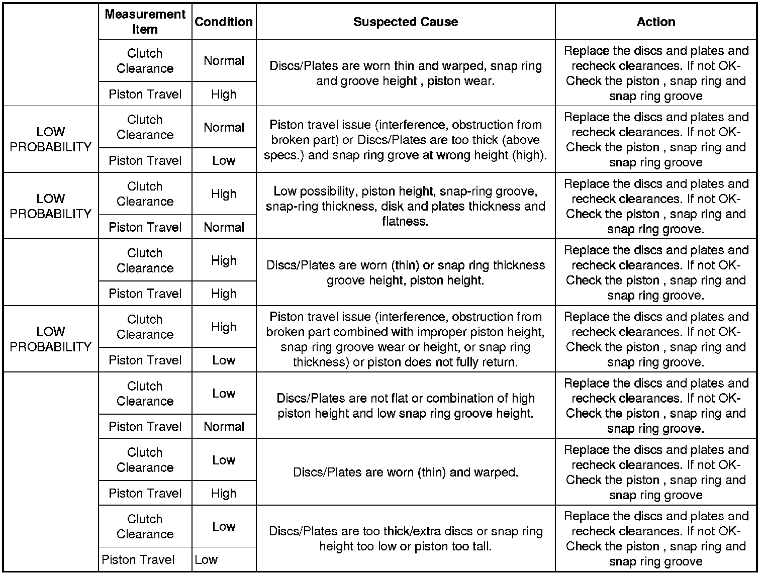 CLUTCH CLEARANCE AND PISTON TRAVEL COMBINATIONS