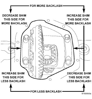6. If backlash is not within specifications adjust shims equally on both sides to obtain backlash specification.