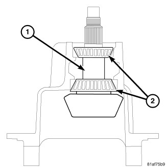 Pinon bearing preload is set using a select preload spacer (1) located between the pinion bearings (2).