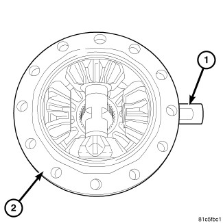 7. Install remaining pinion mate shaft (1) into differential case (2).