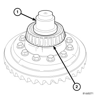 1. Install Plug (1) into differential case this way to remove the large bearing (2).