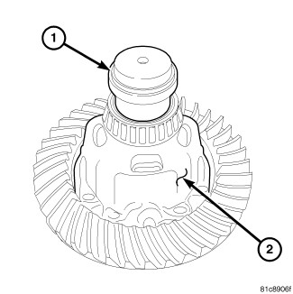4. Turn Plug (1) over, in other side of the differential case (2) to remove the small differential case bearing.