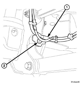 6. Remove brake hose retainer (1) bolts (2) from axle.