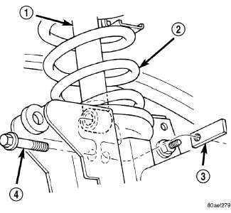 10. Remove shock absorbers (1) bolts (4) from axle brackets.