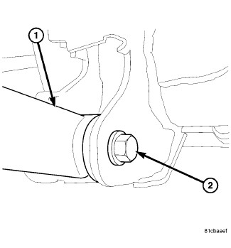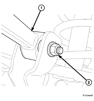 14. Remove upper control arm (1) nuts (2) and bolts from axle brackets.