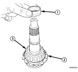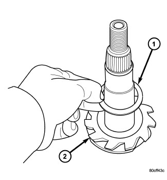 3. Install pinion depth shim (1) on the pinion gear (2) shaft.