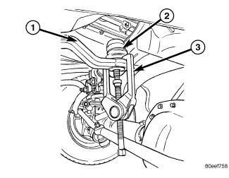 9. Remove tie rod and drag link (2) with Puller (3) from the steering knuckles.