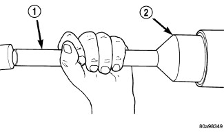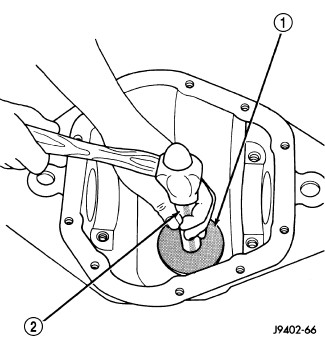 1. Install new front pinion bearing cup with Installer (1) and Handle (2).