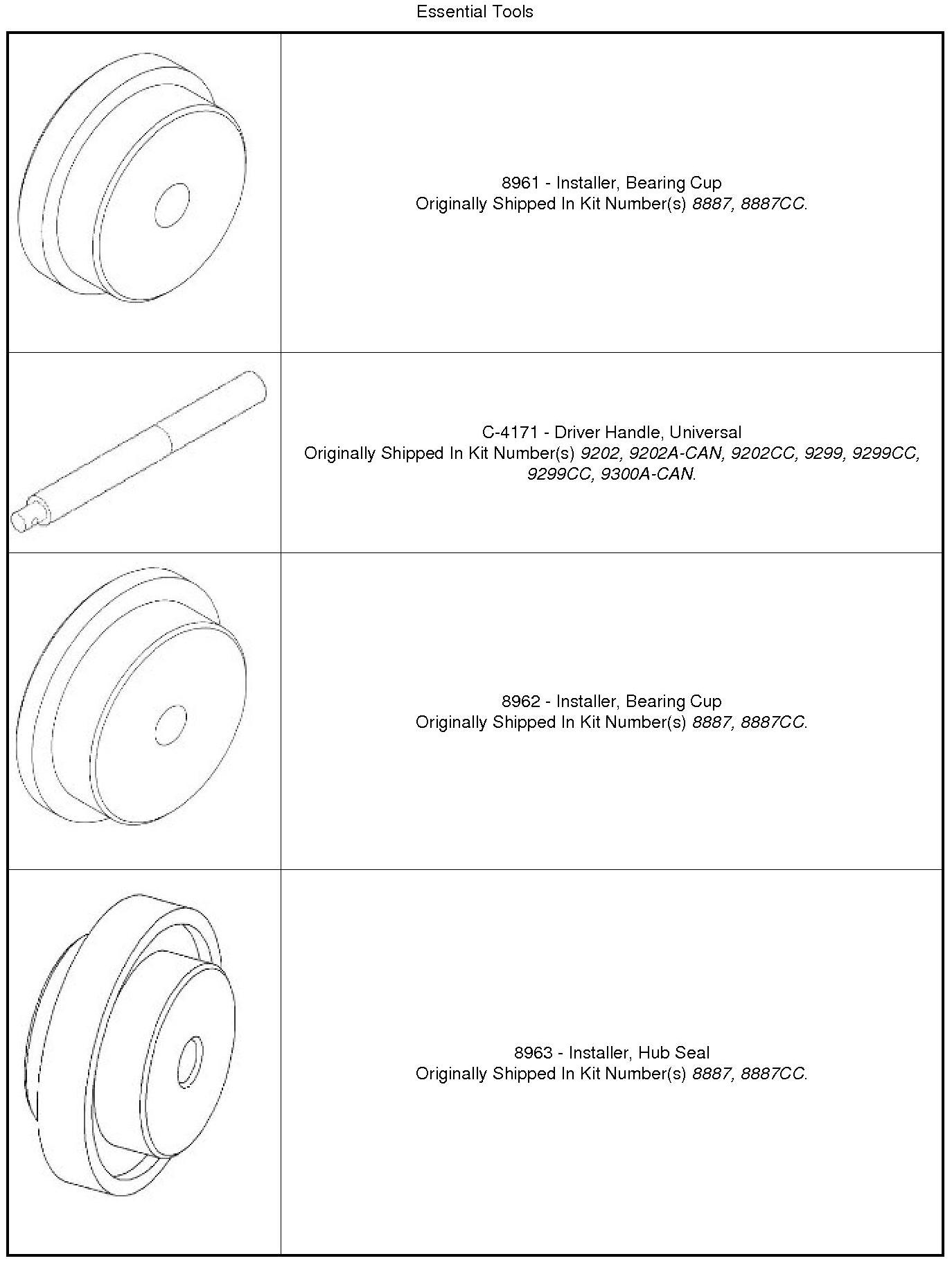 2. Install inner hub bearing cup with Installer and Handle.