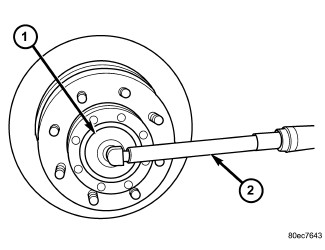 6. Install hub bearing nut with Socket (1) and torque wrench (2) to 30 Nm (22 ft. lbs.) while rotating the hub.