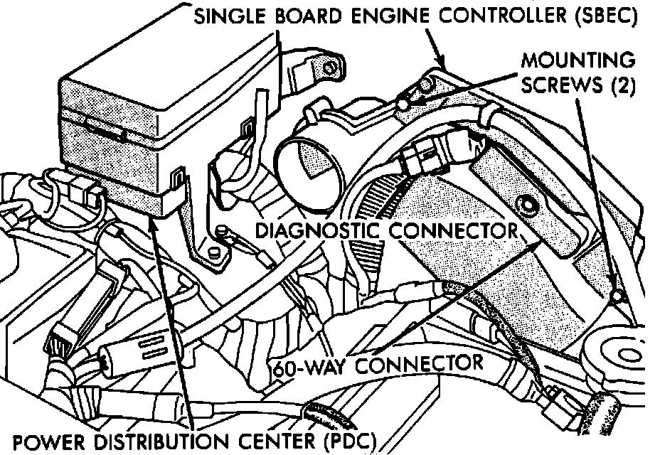 The ASD relay is found on the left inner fender apron near the left strut tower and the diagnostic connector.