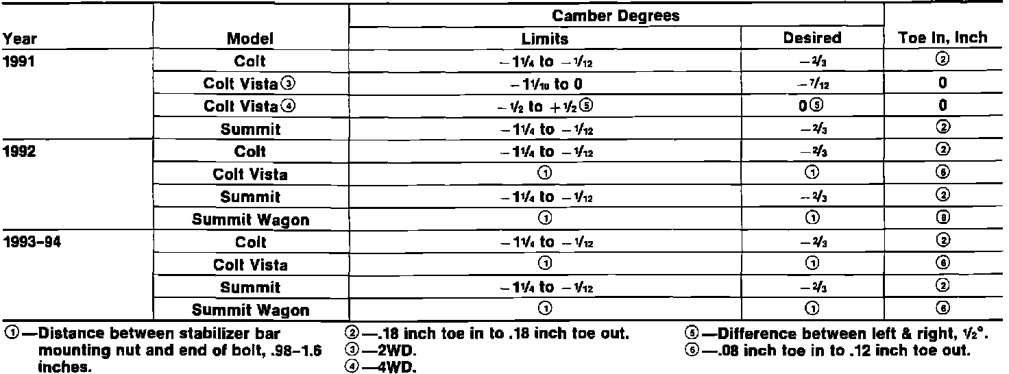 Rear Wheel Alignment Specifications:
