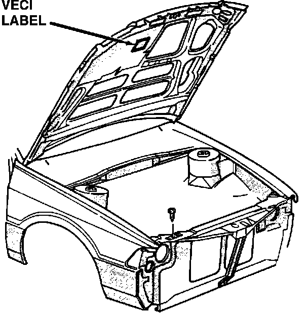 The Vehicle should have a Vehicle Emission Control Information (VECI) label, permanently attached, under the hood (see Fig. 1). (This label cannot be removed without defacing information and destroying the label.)
