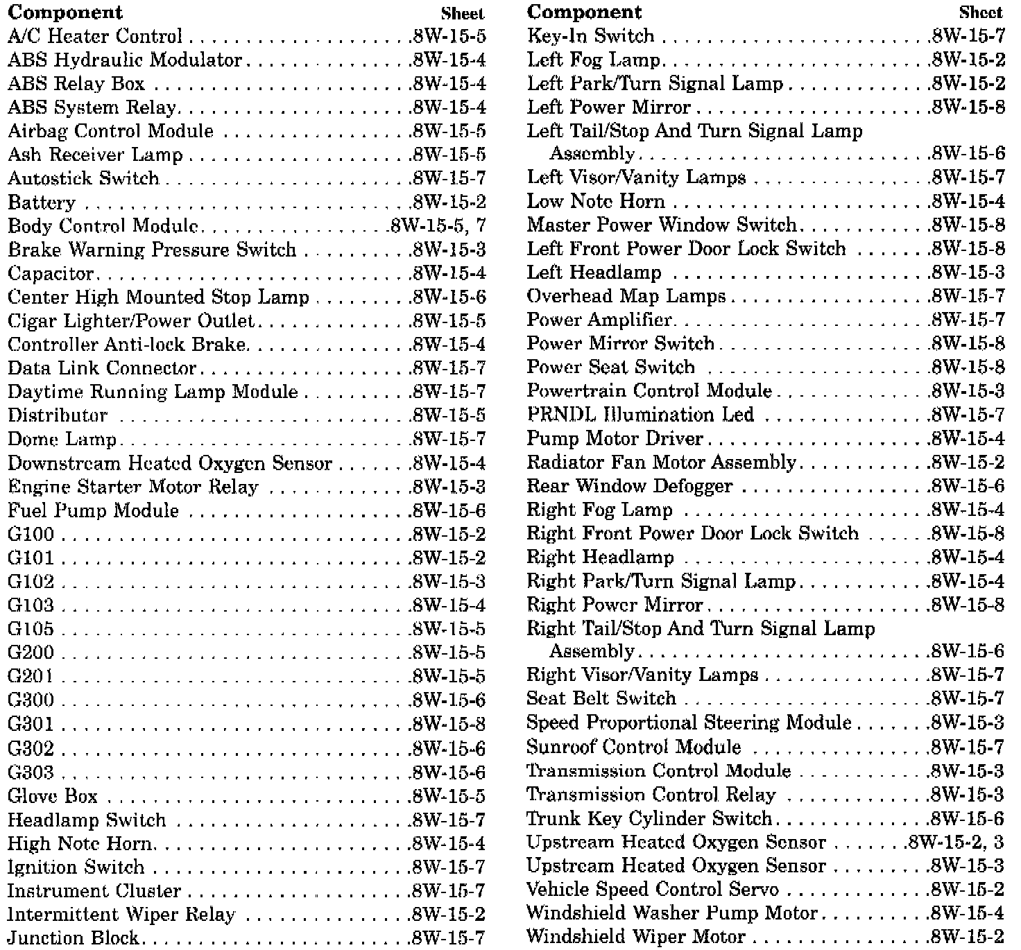 Sheet 8W-15-1 Group Index