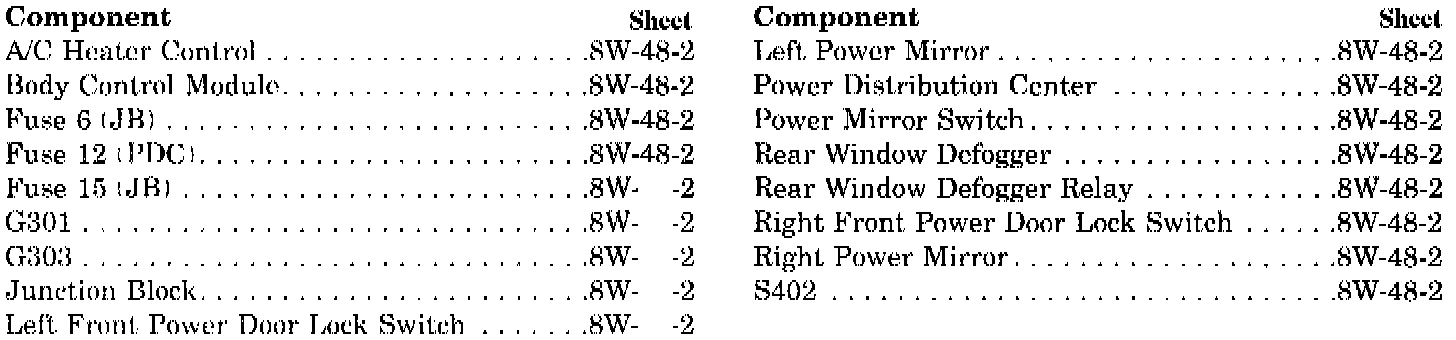 Rear Window Defogger Component Index: