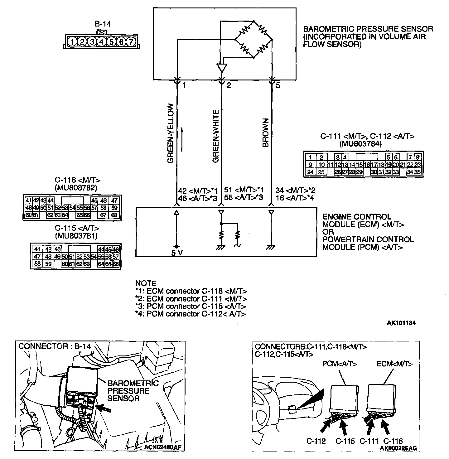 - A 5-volt voltage is supplied to the barometric pressure sensor power terminal (terminal 1) from the ECM (terminal 42)
