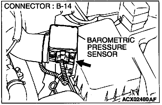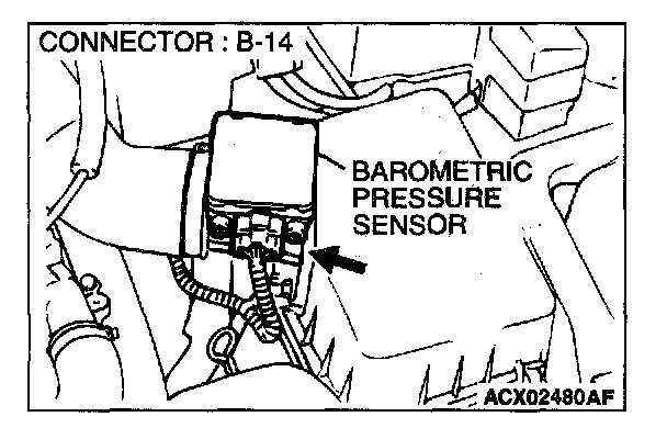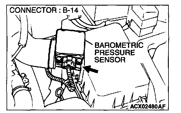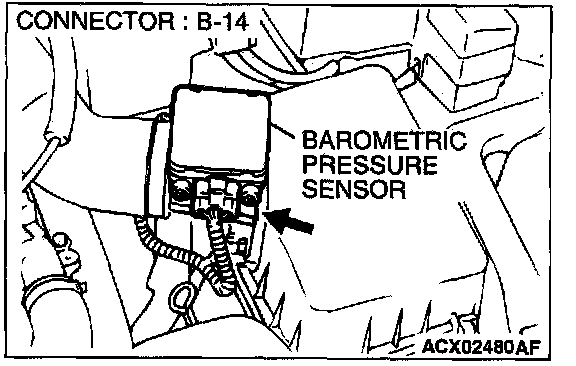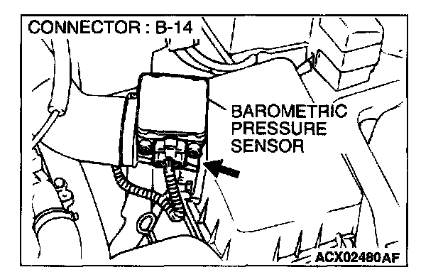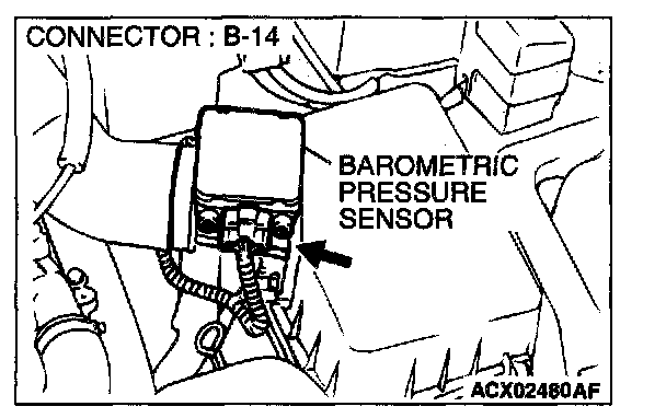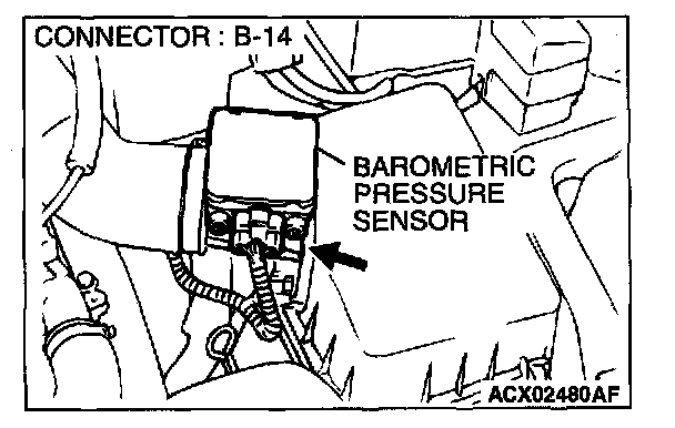 3. Set scan tool MB991502 to the data reading mode for item 25, Barometric Pressure Sensor.
