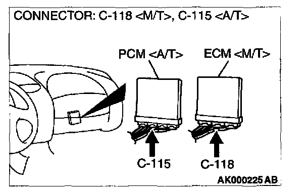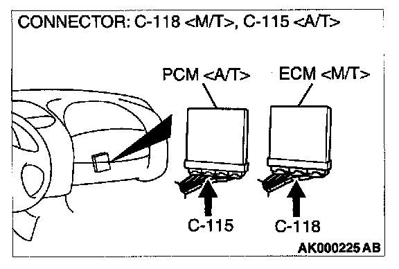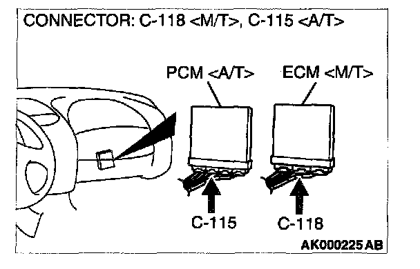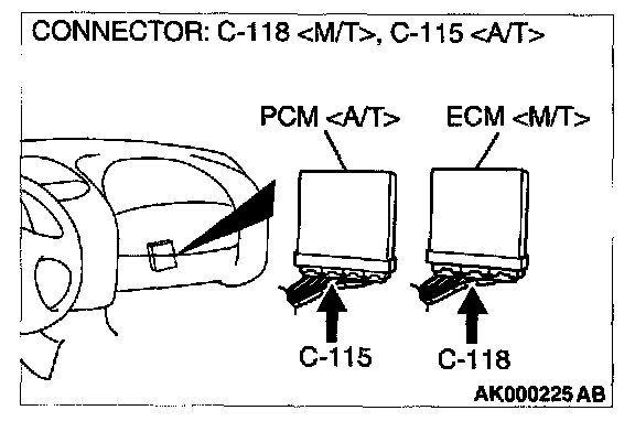 STEP 9. Check connector B-14 at the barometric pressure sensor and connector C-118 at ECM