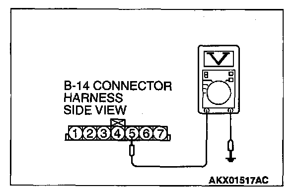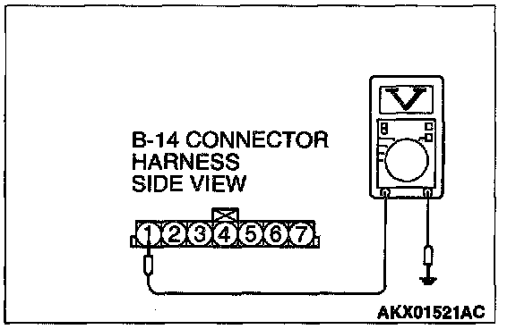 STEP 2. Check the sensor output voltage at barometric pressure sensor connector B-14 by backprobing.