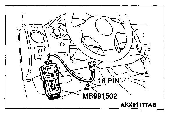 1. Connect scan tool MB991502 to the data link connector.