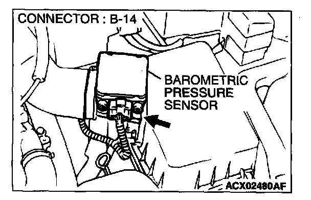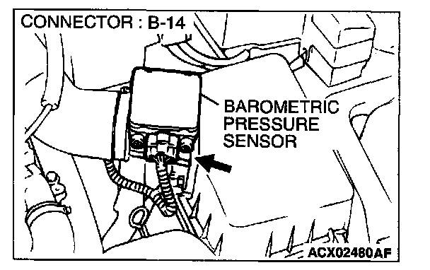 3. Set scan tool MB991502 to the data reading mode for item 25, Barometric Pressure Sensor.