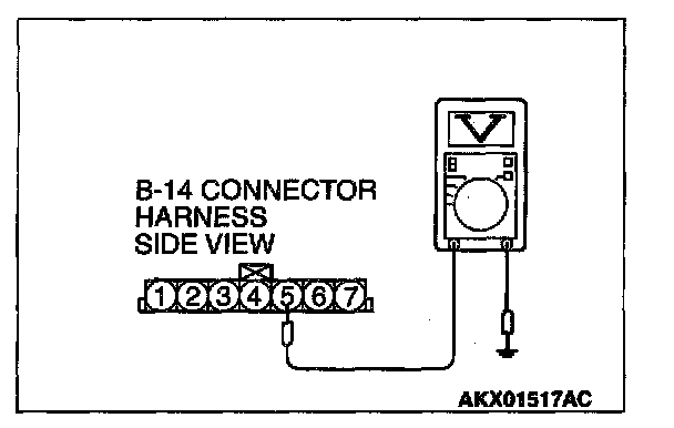 STEP 7. Check the ground voltage at barometric pressure sensor connector B-14 by backprobing.