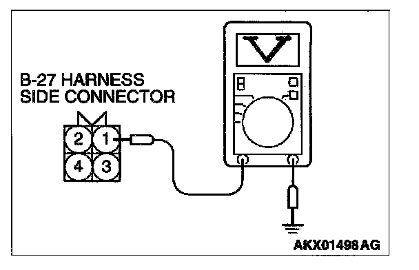 STEP 3. Check the power supply voltage at right bank heated oxygen sensor (front) harness side connector B-27.