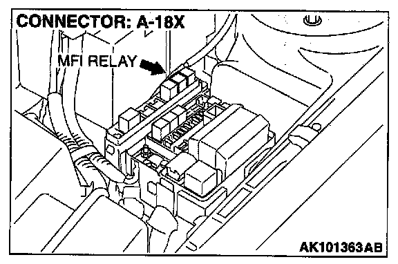 STEP 4. Check connector A-18X at the MFI relay for damage.