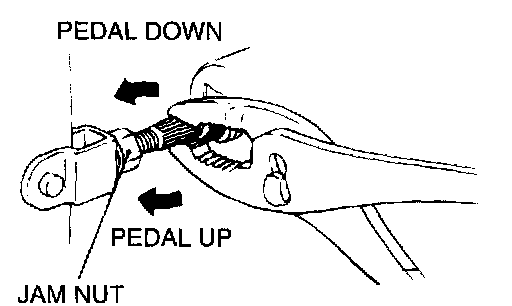 3. Loosen the operating rod jam nut. Turn the serrations of the operation rod with pliers to adjust the brake pedal height to the standard valve.
