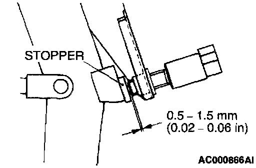 5. Turn the stoplight switch 1/4 turn clockwise to secure. Then confirm that the clearance between the switch plunger and the stopper is as shown.