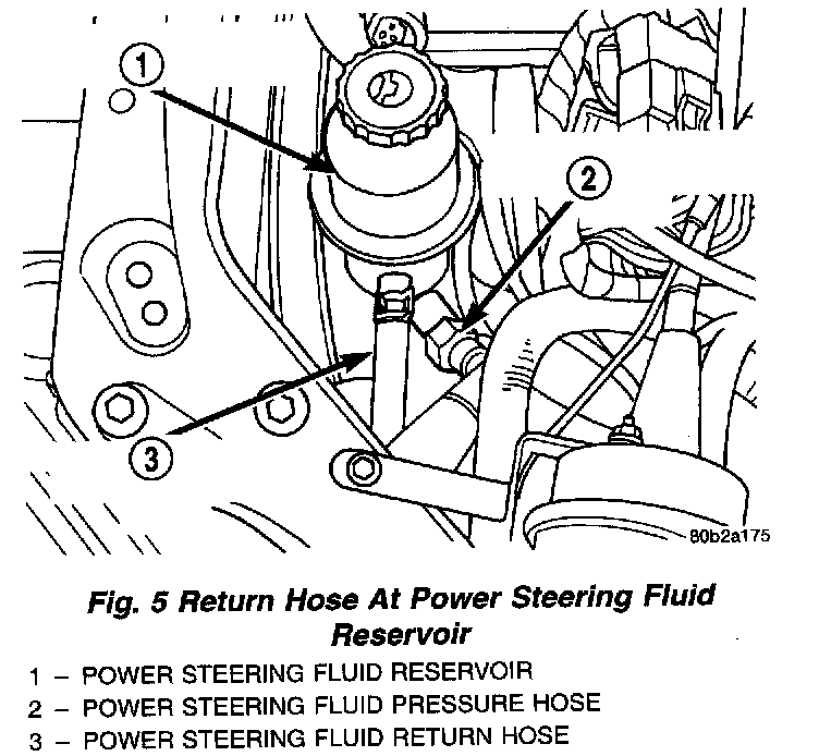 3. Remove the power steering fluid return hose from the power steering fluid reservoir.