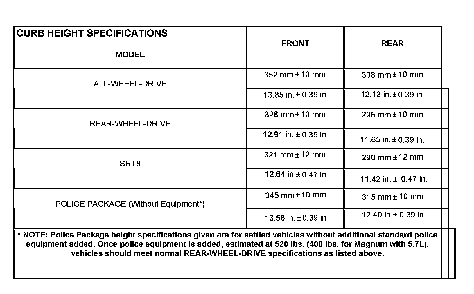 3. Compare the measurements to the specifications listed in the following Curb Height Specifications chart.