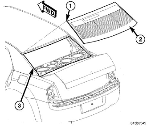 3. Install a new rubber seal (1) around the top and side edges of backlite (2).
