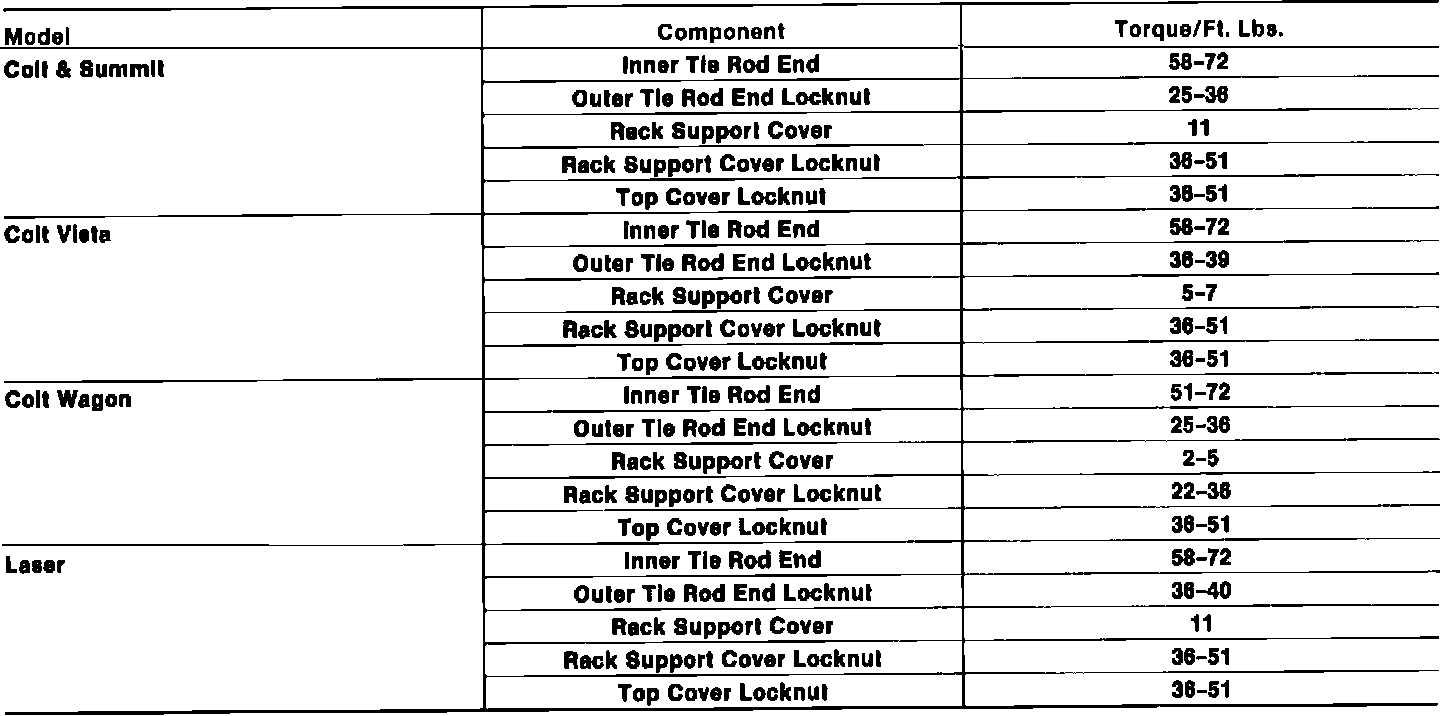 Tightening Specifications: