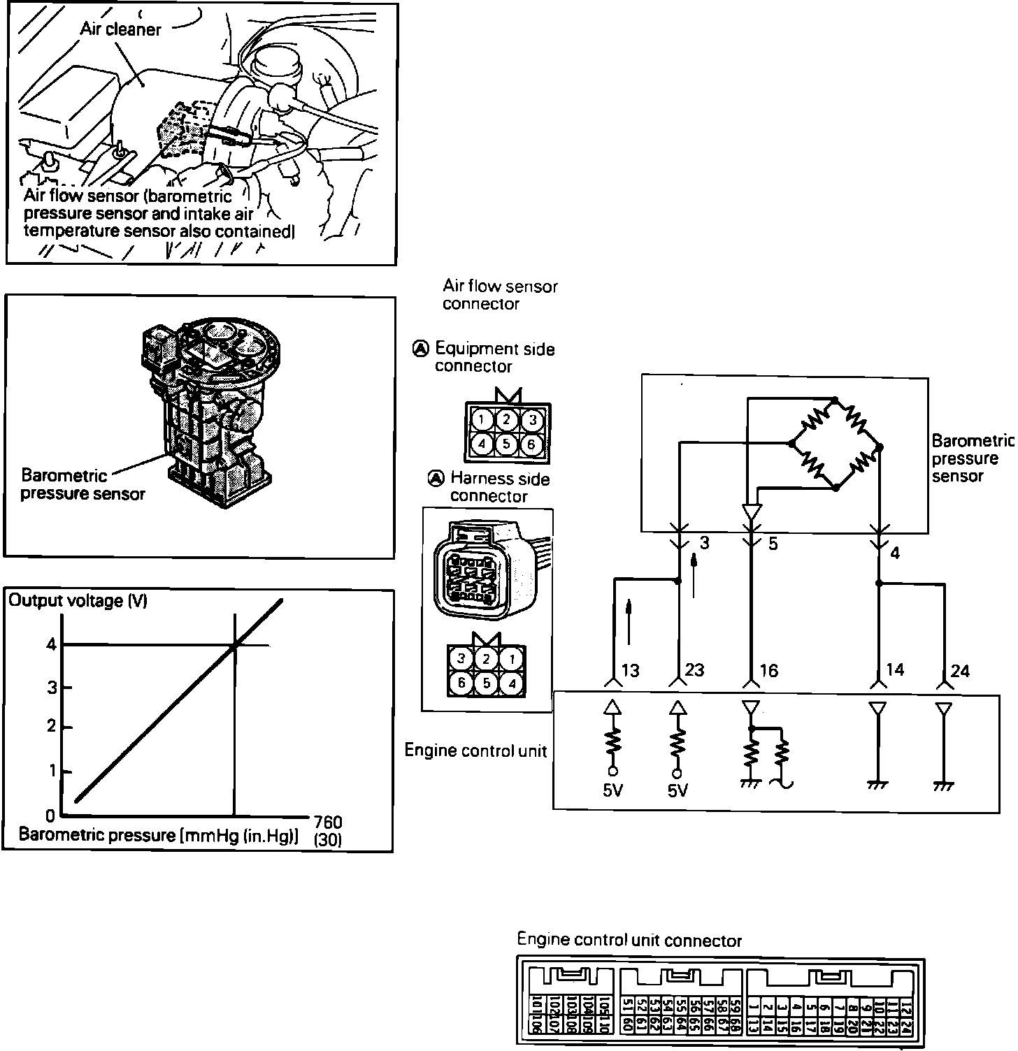 The ECU uses the voltage signal to adjust the air-fuel ratio and ignition timing for the altitude at which the vehicle is running, thus improving driveability at high altitude.