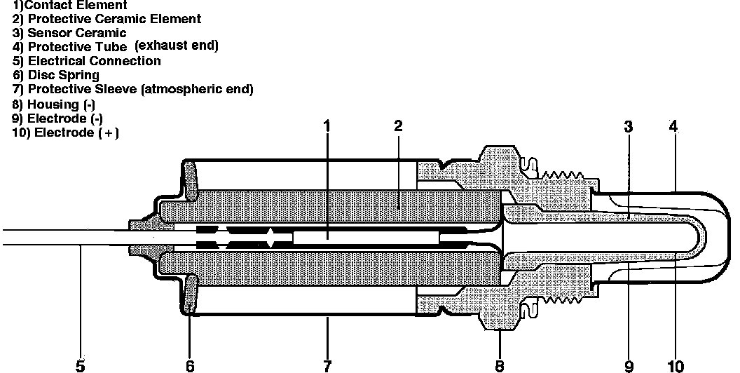 The difference in the amount of oxygen contacting the inner and outer surfaces of the oxygen sensor creates a pressure differential which results in a voltage signal being generated. The amount of voltage produced is determined by combustion efficiency.