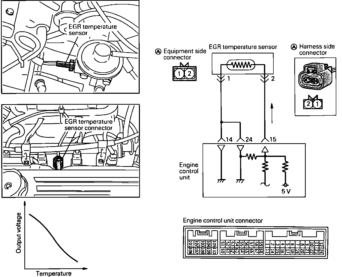 To confirm that the EGR valve is functioning properly, the ECU expects to see an increase in temperature at the sensor whenever the EGR valve is operating. In the event of a malfunction the ECU will set a code and turn the Check Engine Light "on". The resistance value of the sensor increases as temperature decreases.