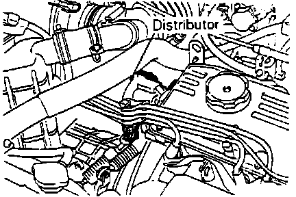 The Distributor is mounted on the rear of the cylinder head, near the center of the engine compartment.