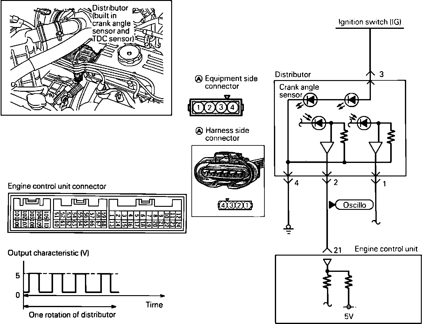 1. Disconnect the crankshaft position/camshaft (TDC) sensor connector and turn the key to the ON position.