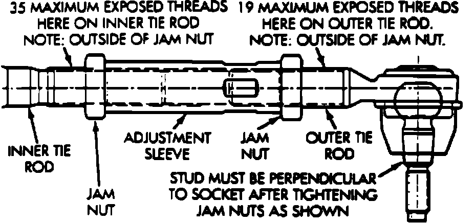 13. Adjust tie rod length between end of bellows and inner side of tie rod locknut to 7.1 inches.