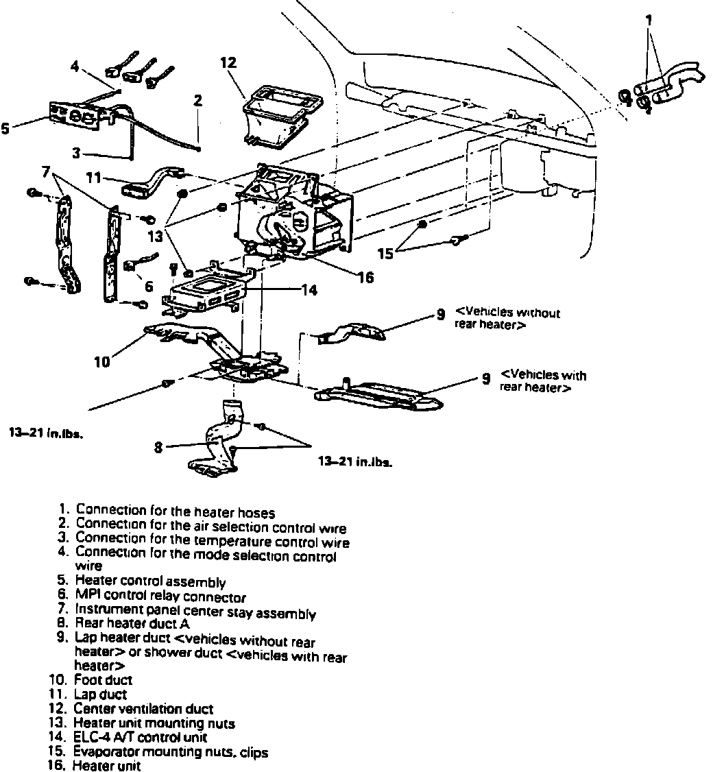 8. On models less rear heater, remove lap heater duct.