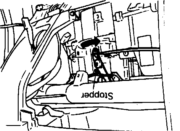 c. Place air selection lever in recirculation position, then set air selection damper lever as it contacts stopper as shown, connect air selection control wire to lever and secure outer cable using clip.