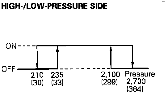 5. Operate the air conditioning system and check for switch continuity at the specified pressure.