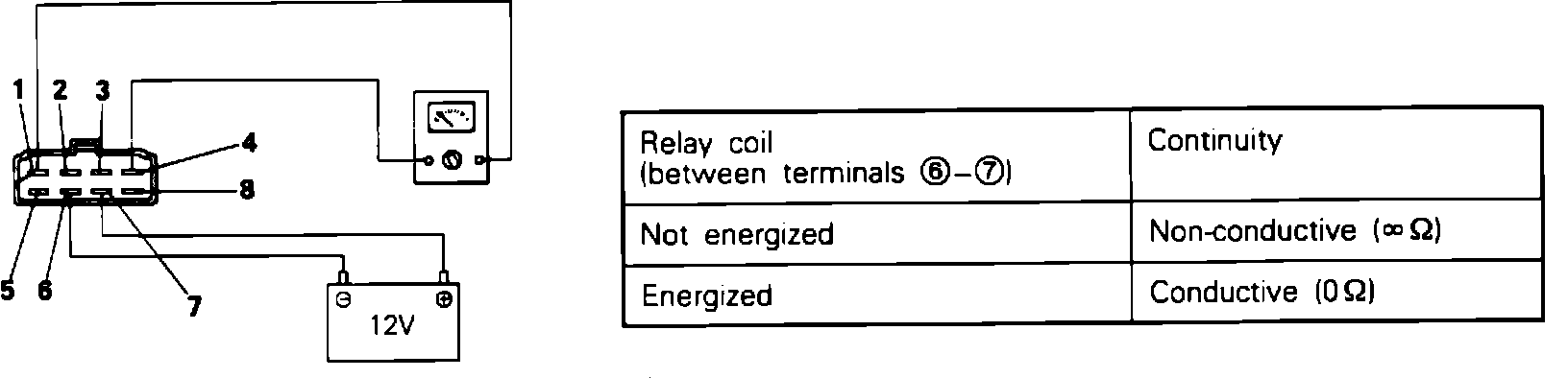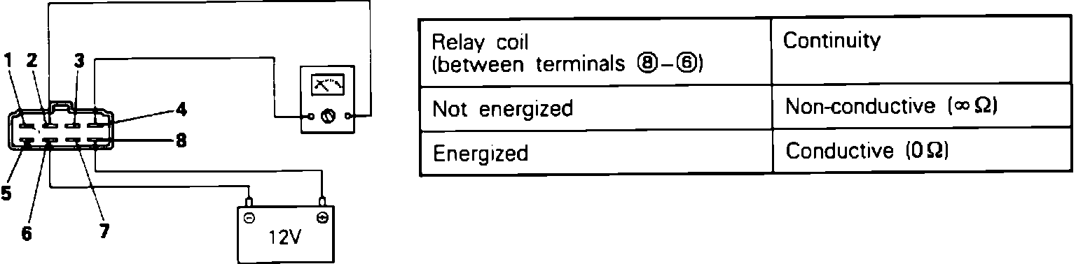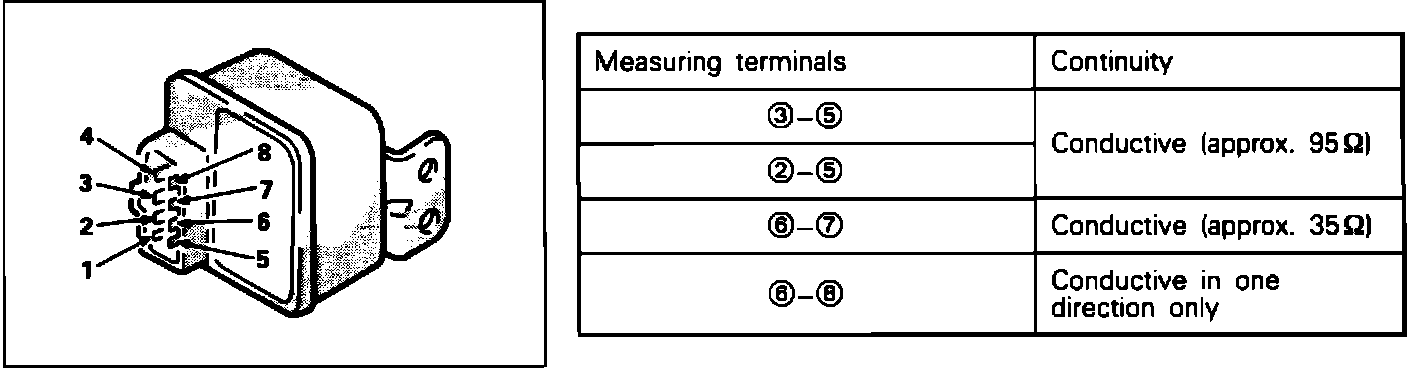 4. Using an ohm meter, check the resistance terminals 2 and 4, when voltage is supplied and not supplied between terminals 6 and 8 as shown in FIG. 3.