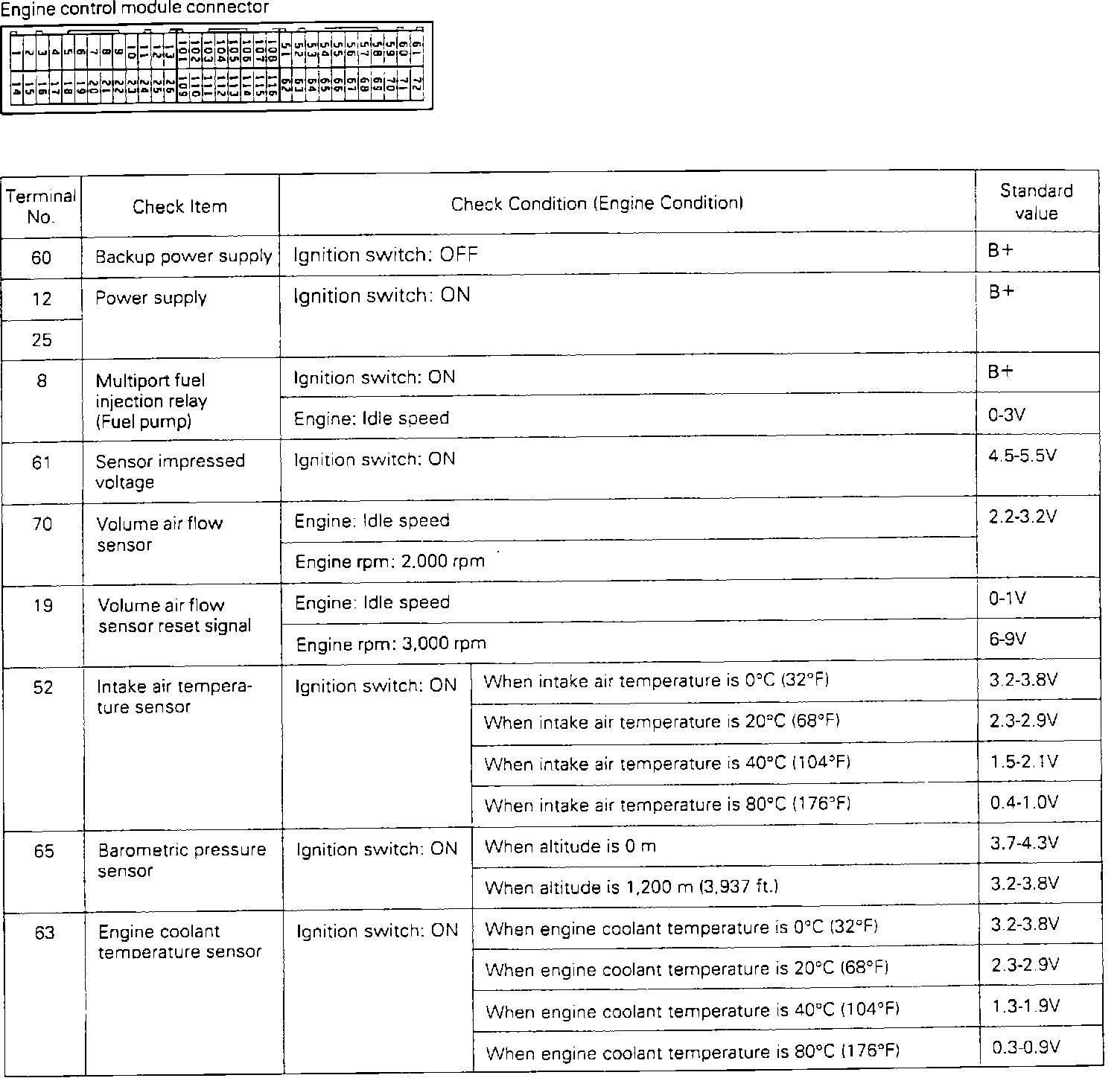 ECU Terminal Voltage Chart (1/3):