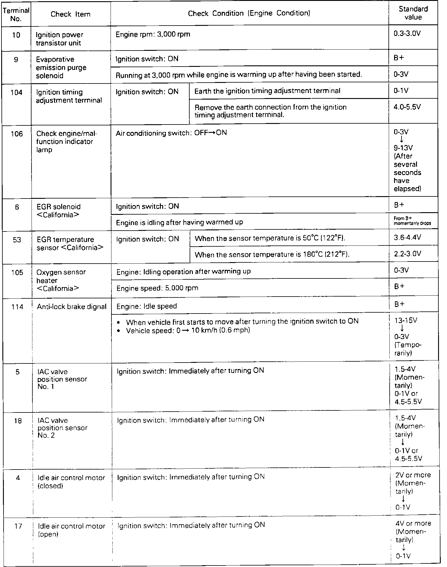 ECU Terminal Voltage Chart (3/3):