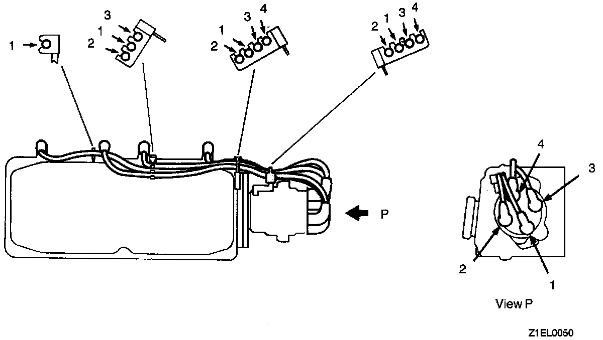 2. The numerals on the support and clamp indicate the spark plug cable no.
