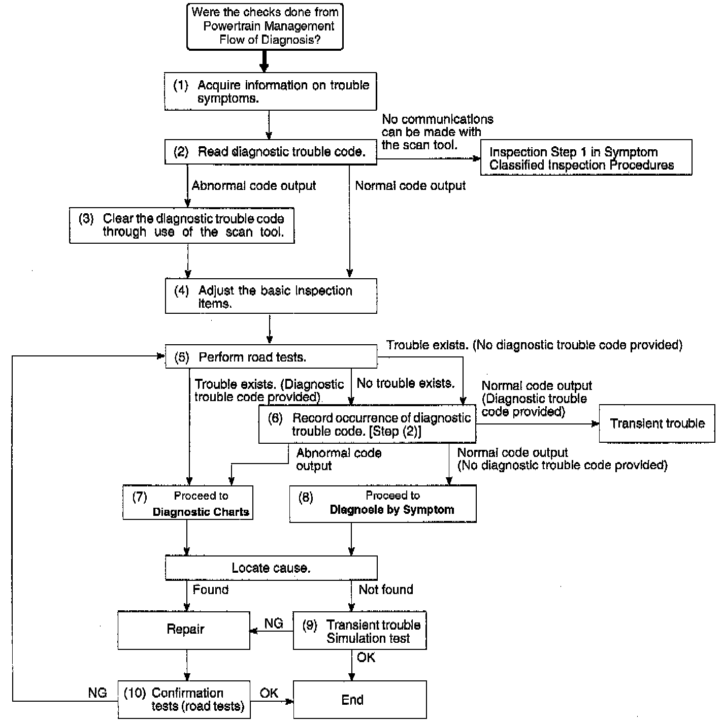 6. Check to see whether there is a diagnostic trouble code (recorded in step 2) before the road tests.