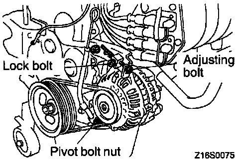 Loosen the pivot bolt nut and the lock bolt as shown in the illustration.
