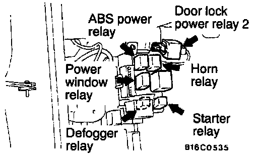 Door Lock Power Relay 2, ABS Power, Power Window, Defogger, Starter And Horn Relays: